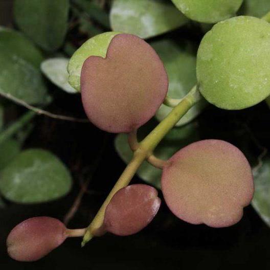 Soft green, coin-shaped leaves measuring 2cm in diameter, with new foliage emerging in a pink-red colour. Cascading form â looks stunning in a hanging basket or large terrarium.Â