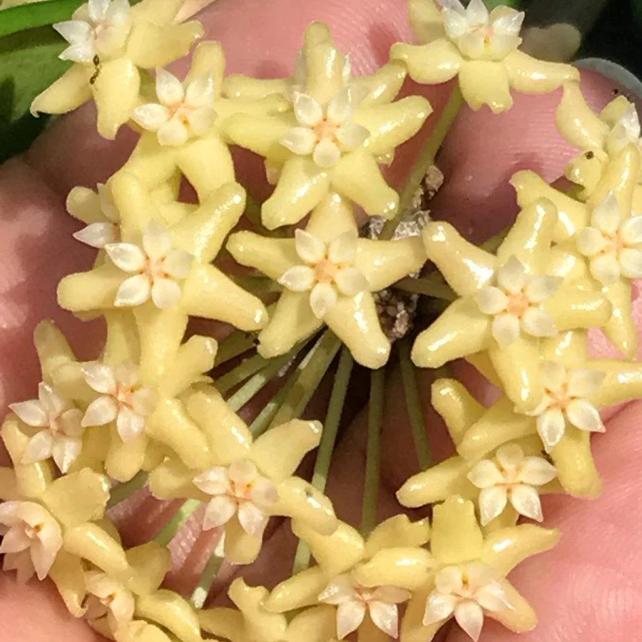Blooms: Star-shaped pale lemon flowers measuring 16mm across, with matching corona. Up to 30 per umbel. Lightly fragrant. Nectar producing. Prolific bloomer. Long lasting flowers.