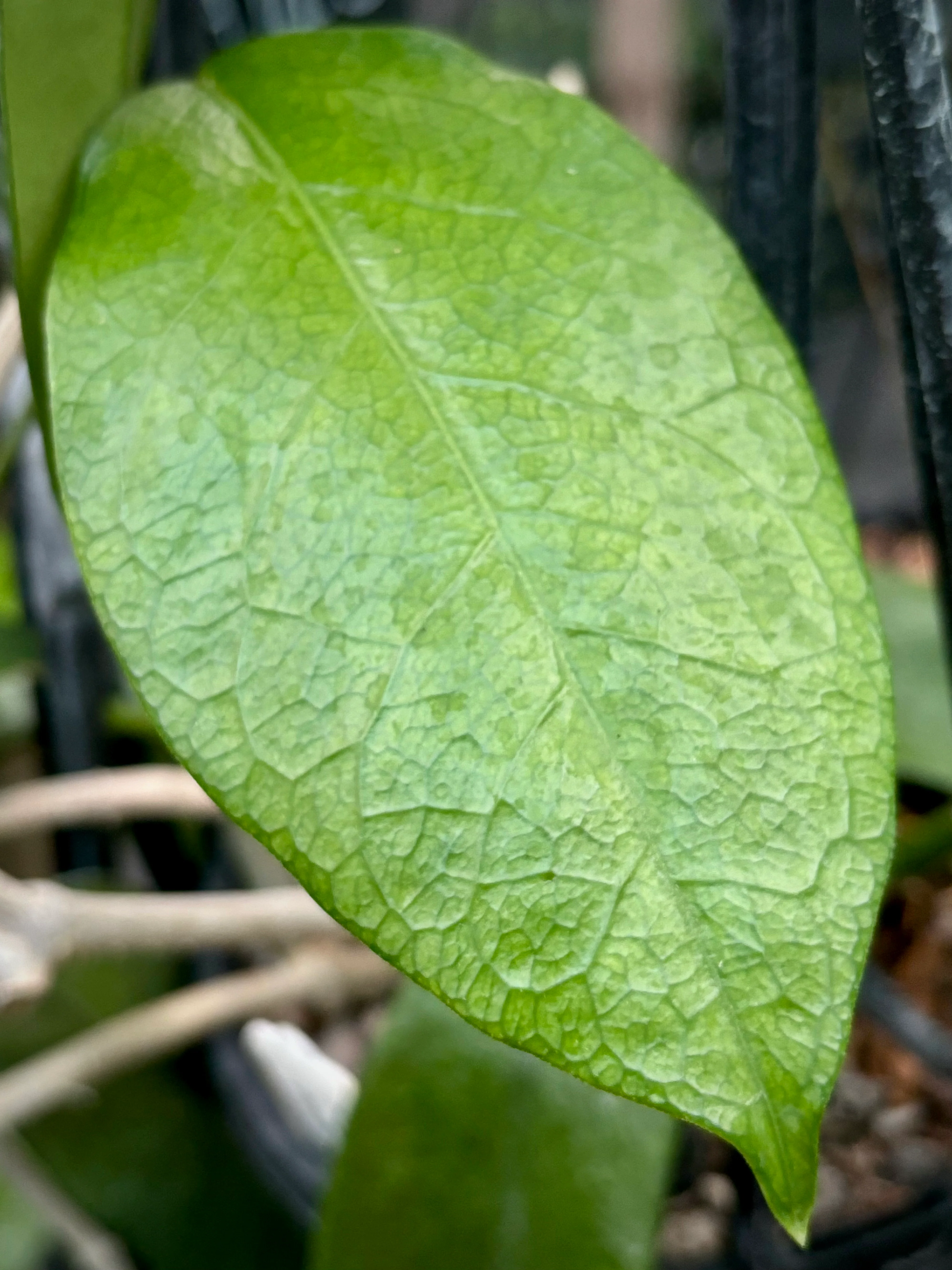 Shiny, lime green leathery leaves measuring up to 13cm x 6cm. New growth a gorgeous reddish-brown colour. Very fast growing.