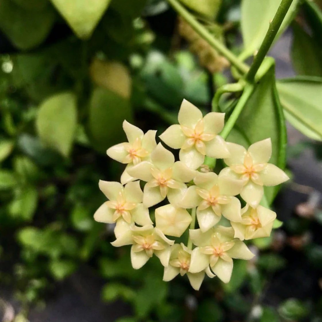 Fast growing hoya with thick, light green, oval leaves measuring 10cm x 5cm.